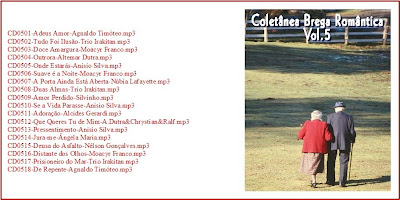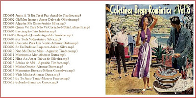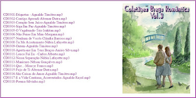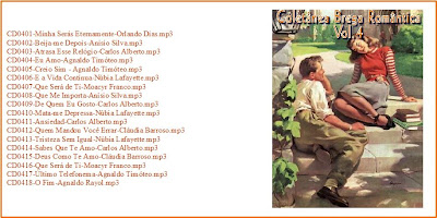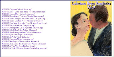 Esta coletânea onde concentrei cantores como Agnaldo Timóteo, Anísio Silva, Altemar Dutra, Trio Irakitan, Núbia Lafayette, Moacyr Franco, Carlos Alberto entre outros chega ao fim. São músicas muito conhecidas mas indispensáveis numa coletânea com o cunho romântico. Obedeci também um critério de qualidade sonora(todas as músicas extraídas de cedes) e o mesmo nível de sonoridade. Bom proveito a todos.